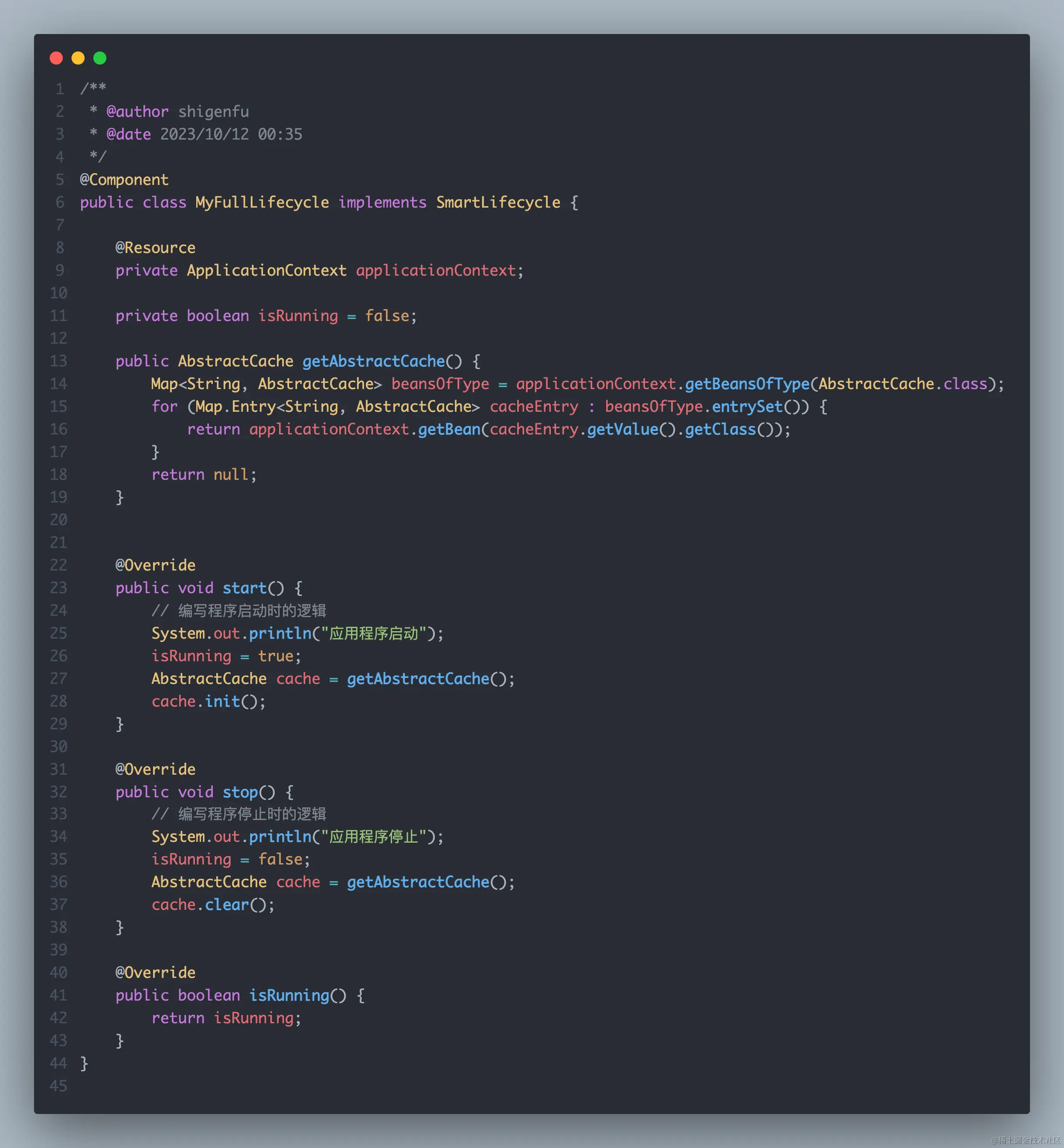 定义在spring boot项目启动之后,立即初始化缓存。在项目结束的时候,立即删除缓存。