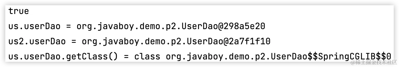 可以看到,UserService 是单例,userDao 确实是不同实例了,并且 userDao 是一个 CGLIB 动态代理对象。
