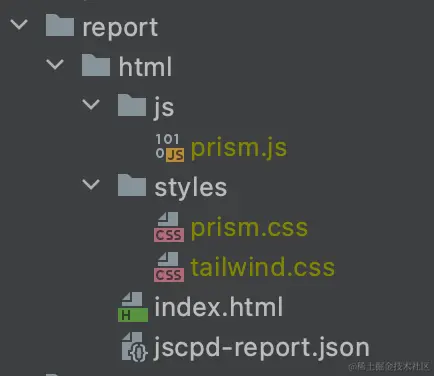 通过命令行参数-o 'report'输出检测报告到项目根目录下的 report 文件夹中,这里的report也可以自定义其他目录名称,输出的目录结构如下所示: