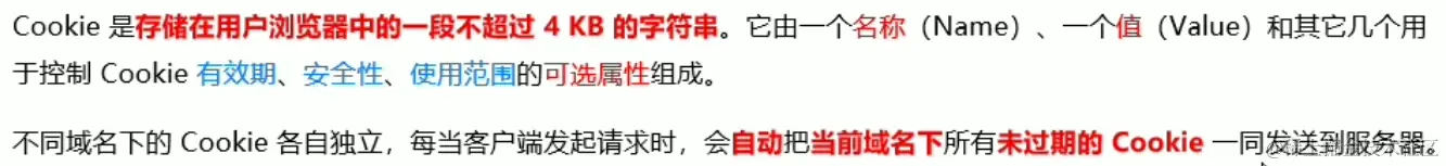 cookie:存储在用户浏览器不超过4kb的字符串,有效期,安全性,使用范围