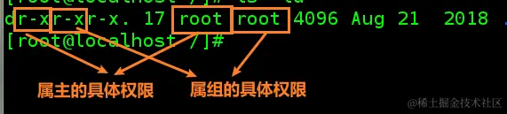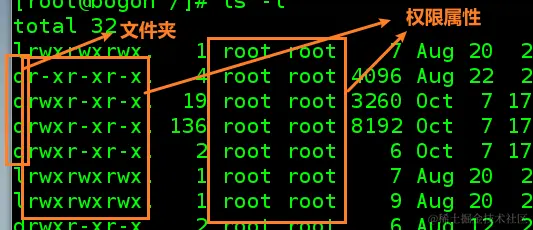 上面图片中,后半部分,两个root ,第一个代表这个文件夹是属于root用户一个人的;第二个root代表这个文件夹是属于root这个组的。