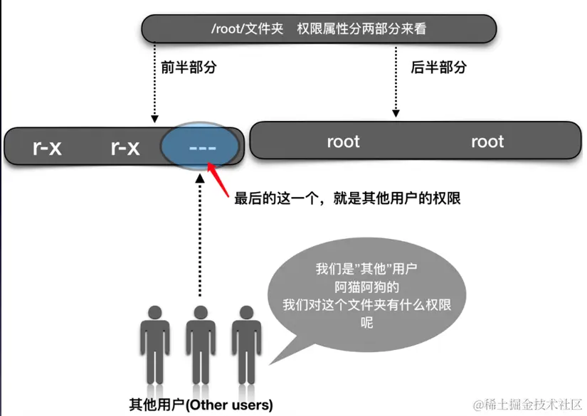 其他用户权限,既不是属组,也不是属主,就算所是其他用户。