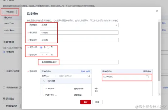 再次点击“添加槽位”按钮,按照如下指导,添加acrostic槽位: