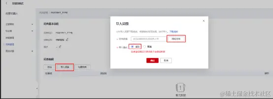 点击页面上的“导入词条”按钮,然后点击“添加文件”按钮,上传本地文件夹下的poetry_type_dict.txt文件,导入模式选“追加”,最后点击“确定”按钮,即可完成诗歌类型词典词条导入。如下图所示: