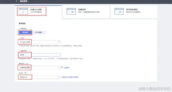 在函数工作流控制台中,点击进入“函数”——“函数列表”,点击右上角的“创建函数”按钮:console.huaweicloud.com/functiongra…