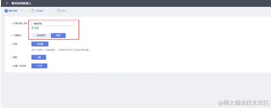 分别输入问答机器人名称,选择试用的计费模式,并点击立即购买完成支付,即完成试用专业版机器人创建。