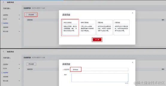 点击此链接,进入对话机器人服务的“技能管理”,新建写诗技能并进行技能配置。