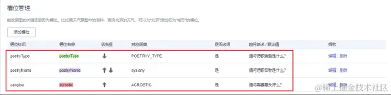 往下滑动页面,找到“槽位管理”页面,分别创建槽位:poetryType(诗歌类型),poetryName(诗歌名称),acrostic(藏头诗)三个槽位。槽位是触发意图的关键信息。