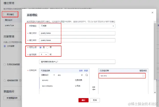 然后点击“添加槽位”按钮,按照如下指导,添加poetryType槽位: