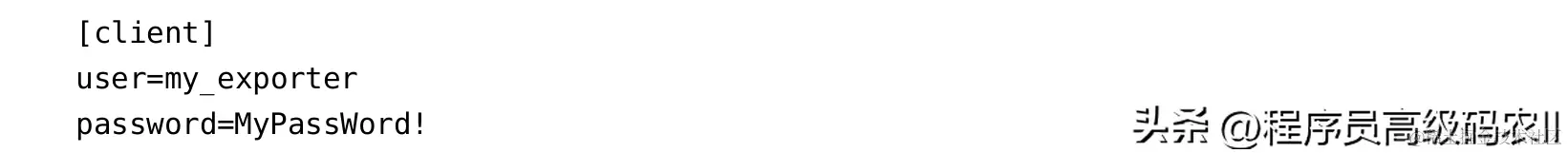 编写mysqld_exporter插件的配置文件.my.config,在配置文件中输入MySQL对应的用户账号及密码,内容如下所示: