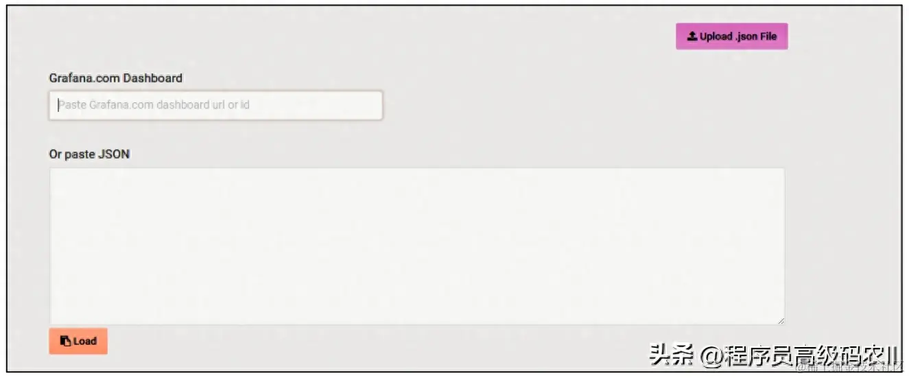 单击图9-15中的“Create”→“Import”选项,导入模板。在第1个输入框中输入Dashboard官网的编号例如1010,或者在第2个输入框中粘贴整个Grafana图表的JSON数据,如图9-21所示。