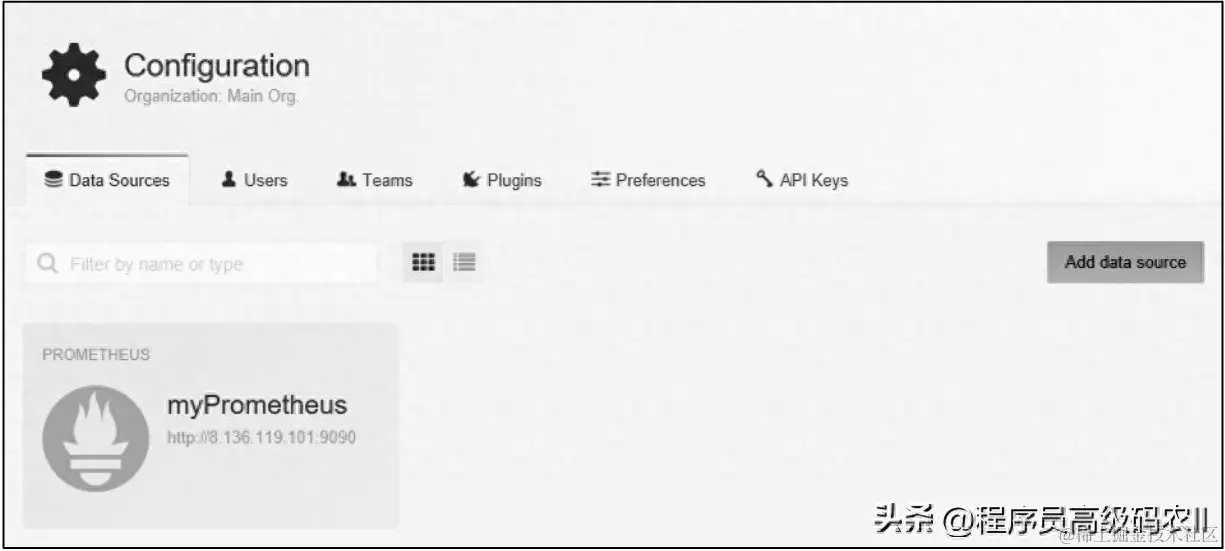 再次单击Data Sources选项,可以看到刚刚配置的myPrometheus,如图9-14所示。