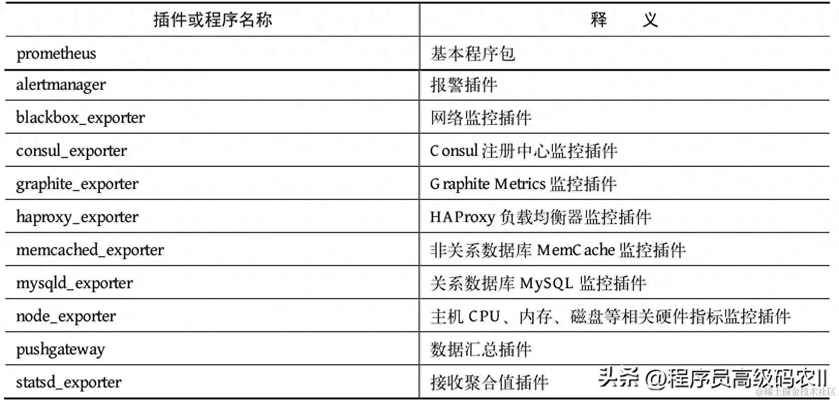 Prometheus的内部插件如表9-1所示。