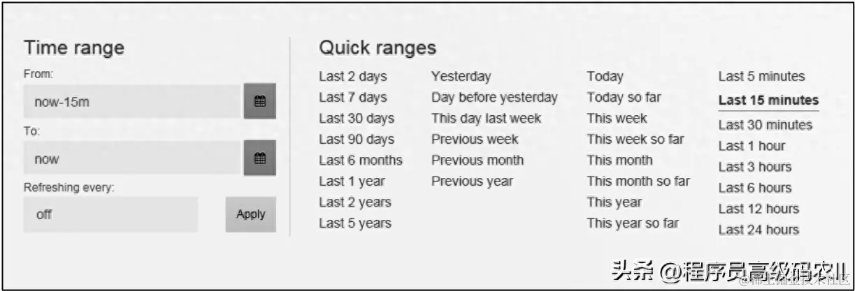 导入图表后,在右上角可选择时间的跨度及刷新频率等参数,如图9-25所示。