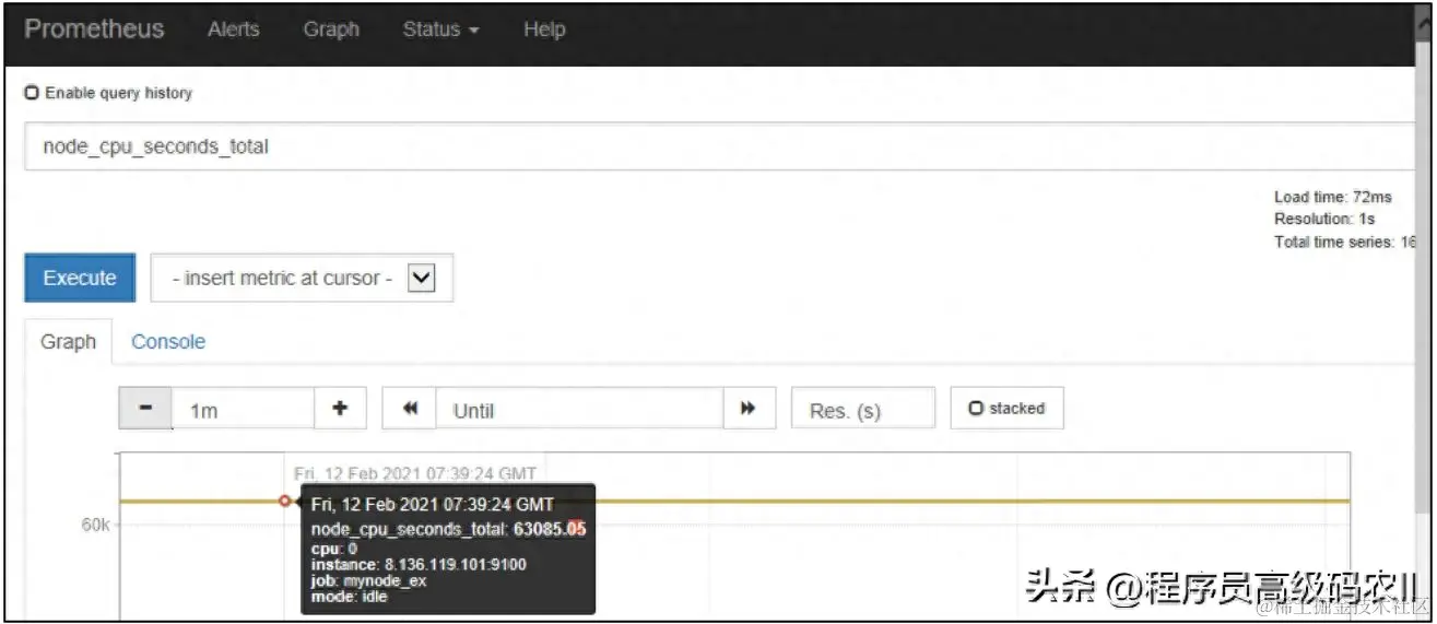 在图9-1中可以输入想要查询的字段,并单击Execute按钮,使用Graph显示相应时间序列的折线图,如图9-2所示。