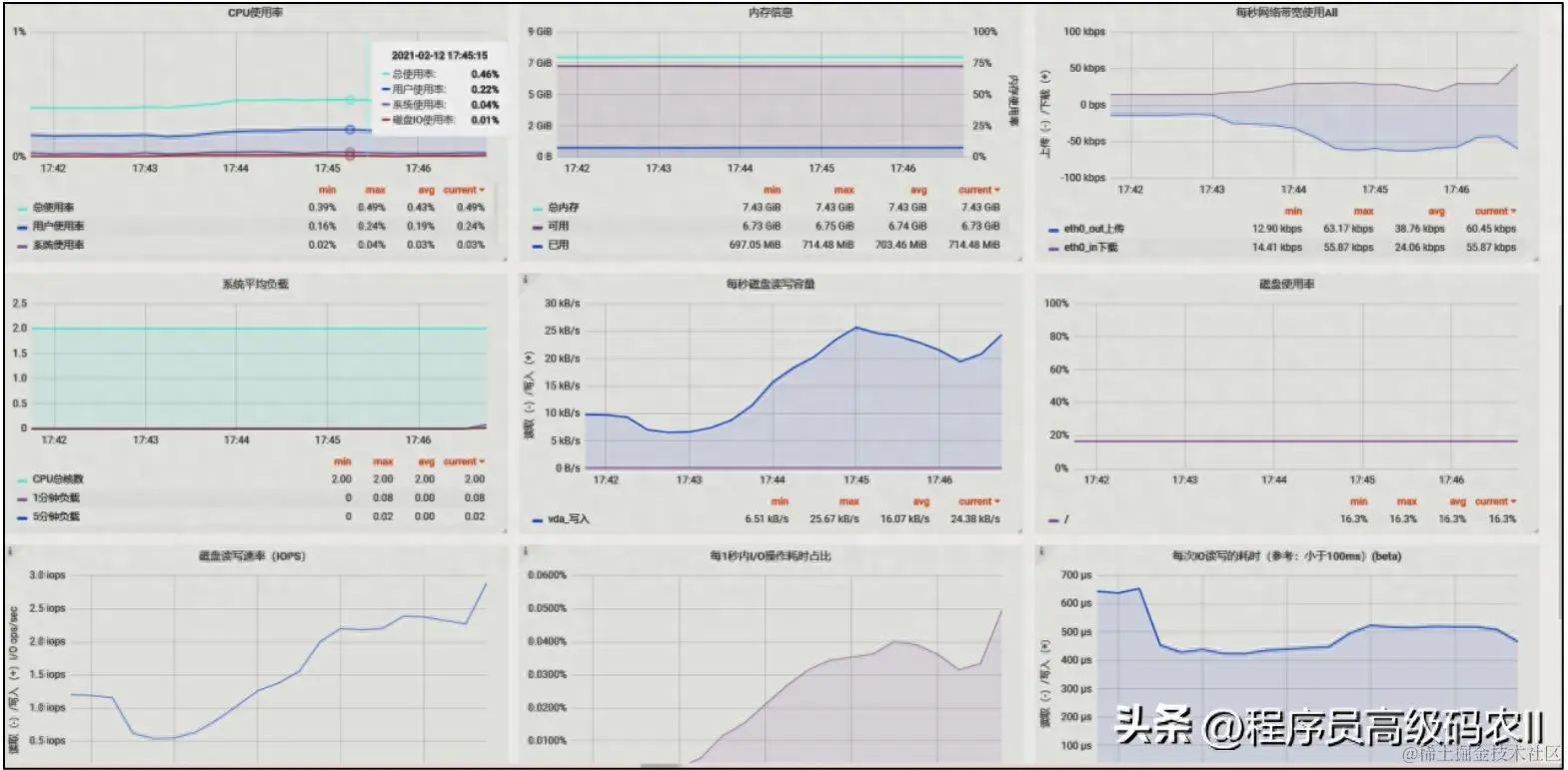 (1)Linux服务器每秒的CPU占用百分比、内存占用百分比、硬盘占用百分比等相关数据。