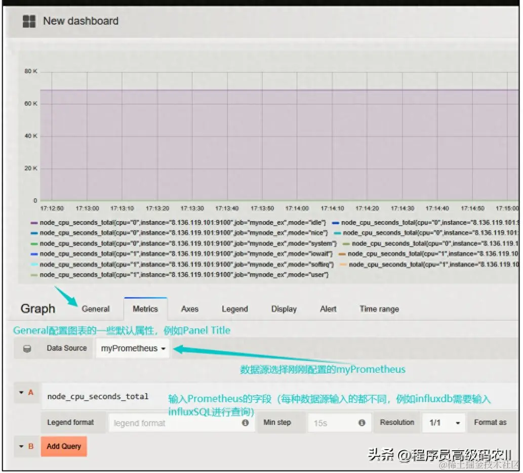 配置图表参数如图9-17所示,也可以单击Add Query按钮,选择查询多个参数,选择后,这些参数将在一个图表中展示。