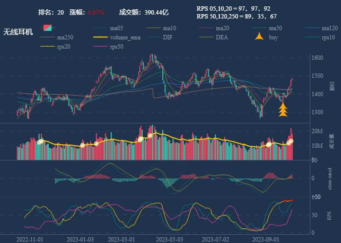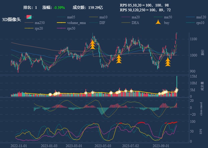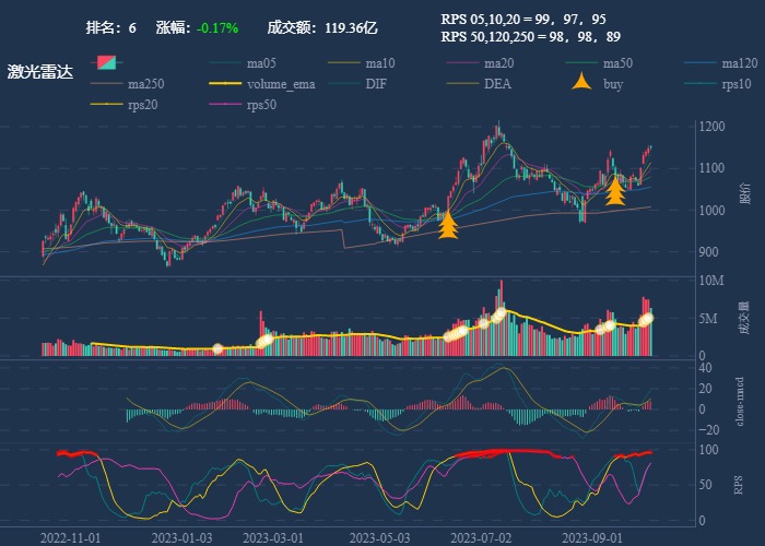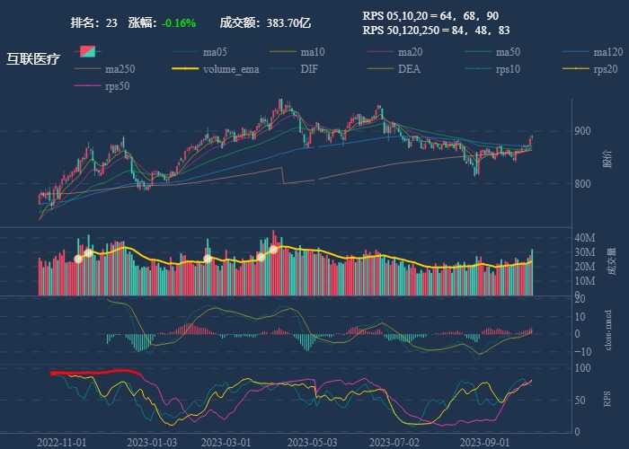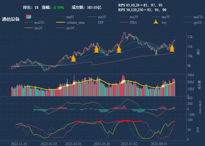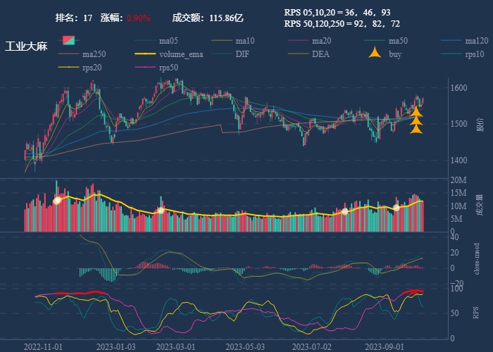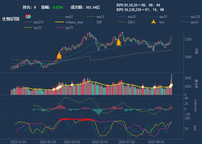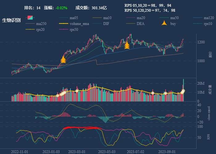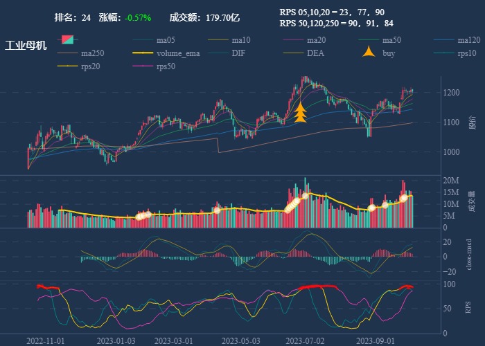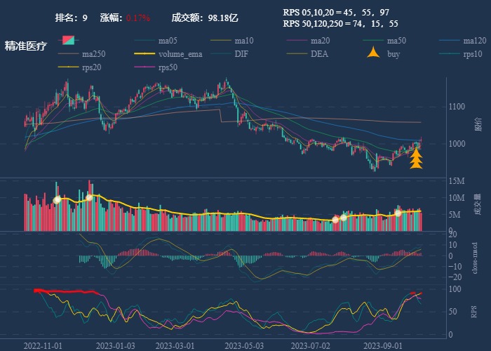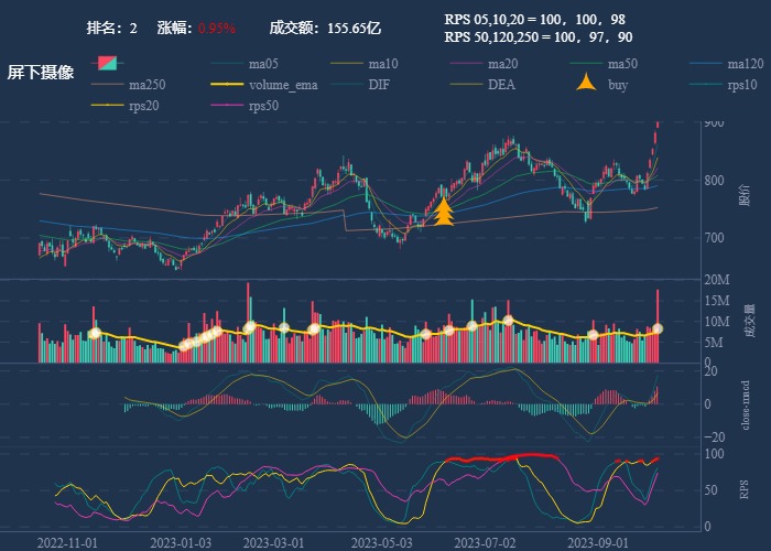 - 一线红:第一次买点出现后往往是顶峰,等回调,macd 反转,rps50 还一直红,第二次买点重现
