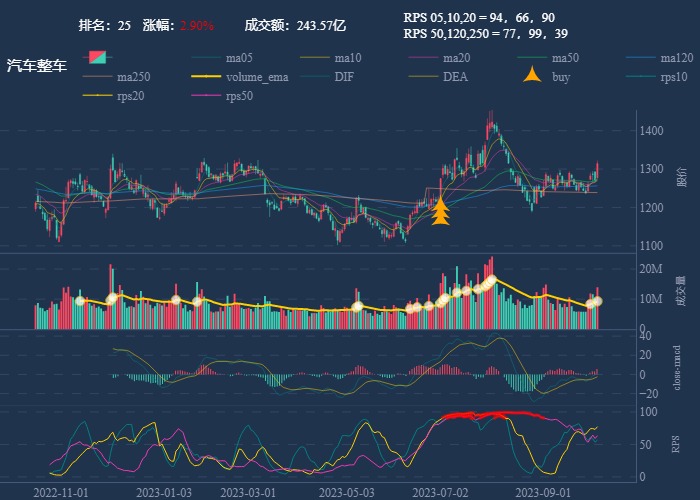 - 第一波行情 rps20 + 10日均线,第二波行情 rps50 + macd反转。