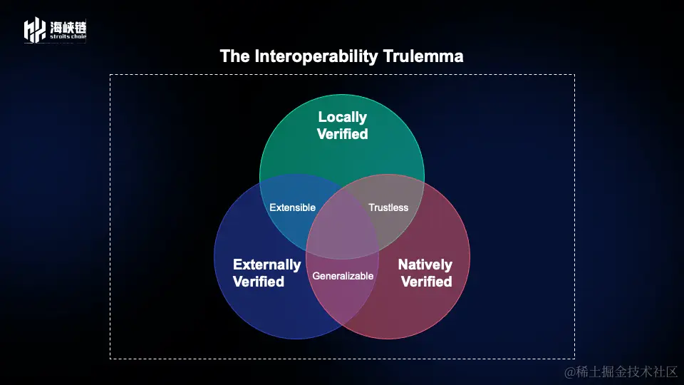 互操作性不可能三角(The Interoperability Trilemma),即任何跨链设计方案,最多只能满足以下三者当中的两者: