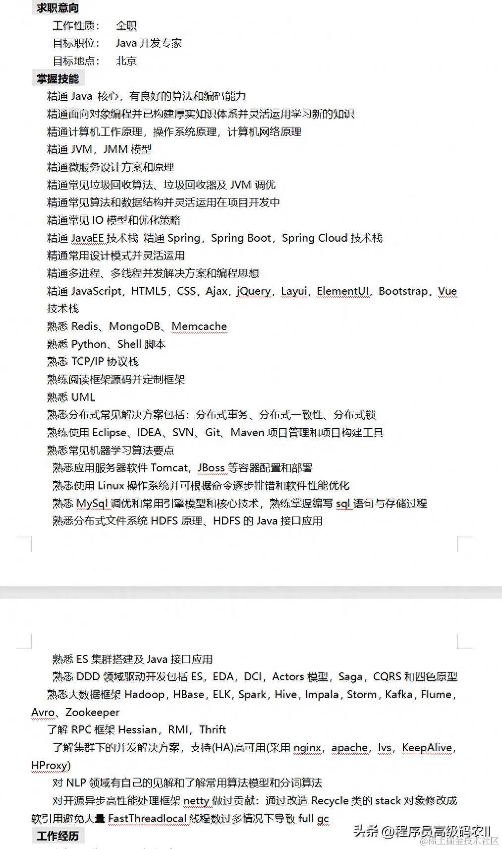 除了所掌握的技能之后,还有工作经历+个人经历+自我的评价,内容太多不方便透露给大家。