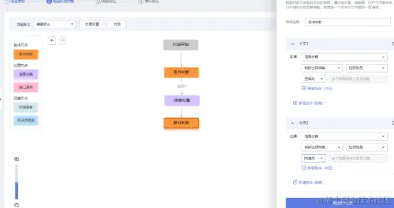 再从左侧节点栏拖拽一个“信息收集”节点到“条件判断”节点下方,并连接起来两个节点,如下图所示: