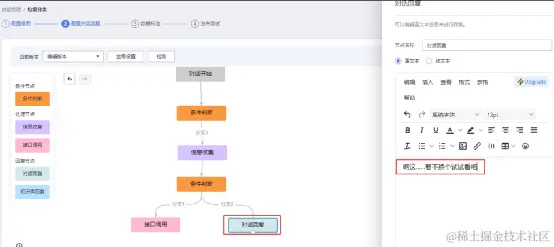 点击“配置对话流程”,完成复杂的对话逻辑配置。