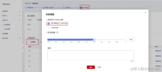 模型训练完成后,点击“线上发布”按钮发布模型。