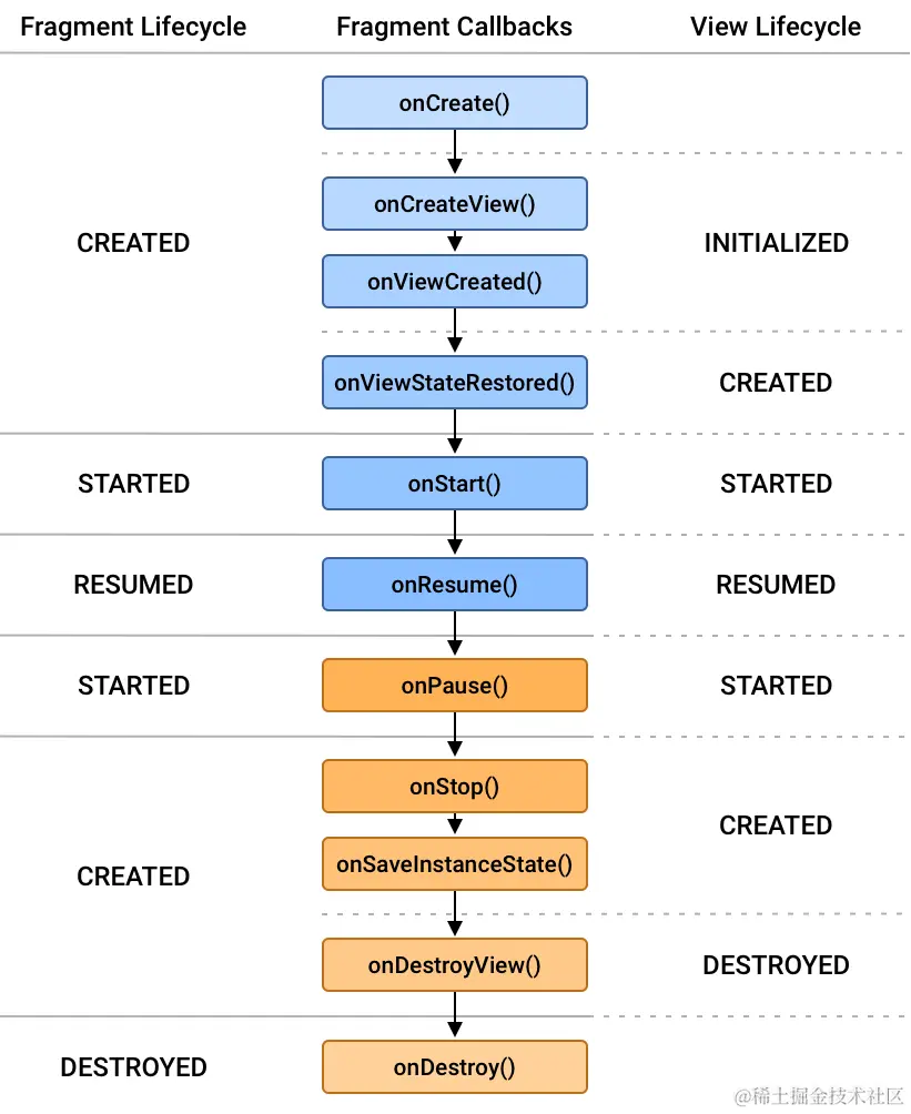 - onStart() :Fragment对用户可见的时候调用,前提是Activity已经started。