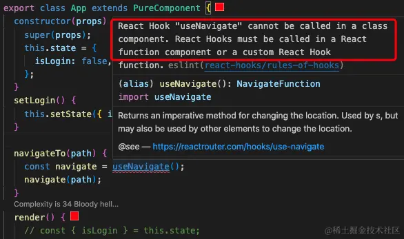 首先编写高阶组件,我们将 useNavigate生成的导航函数作为 router 属性传递给需要使用hook函数的类组件。