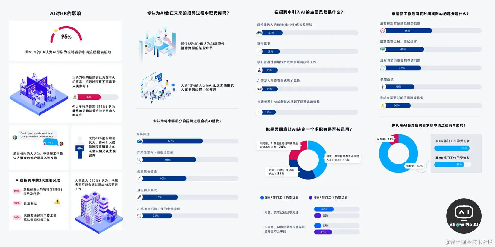 国内外的人才平台和招聘平台正在陆续引进大模型功能。AI对招聘和求职将带来什么影响呢?HR和应聘者持乐观还是悲观态度呢?这份报告给出了1000+人的调研结果。整体来说,双方都对技术发展持乐观态度,但也担心AI偏见等导致的决策失误。