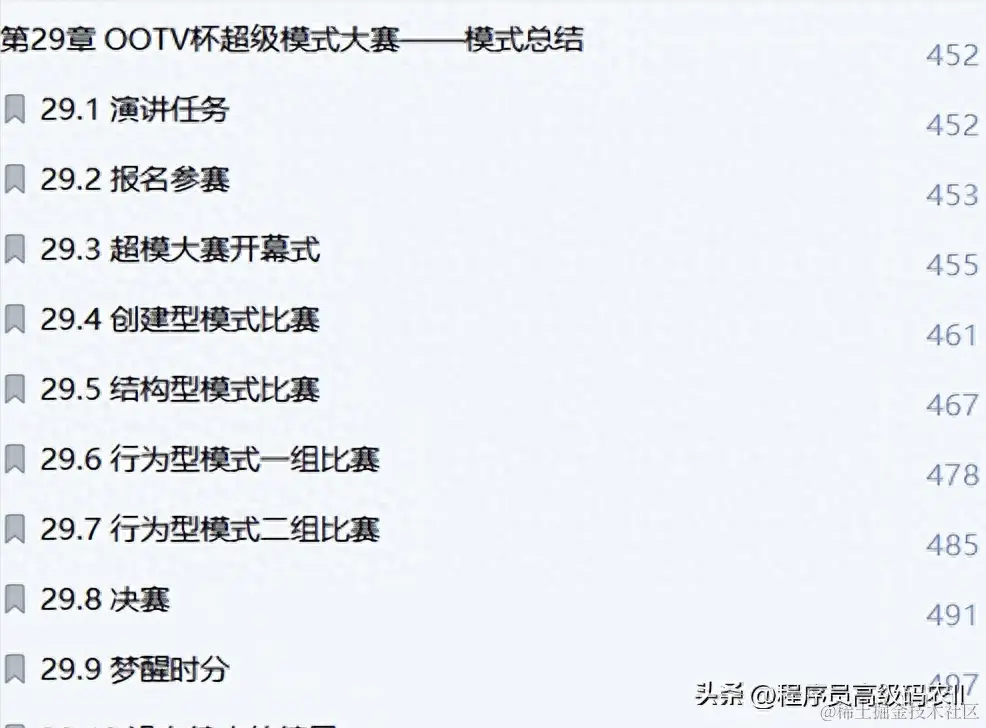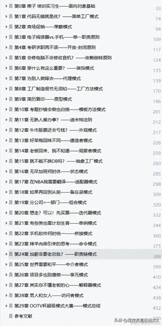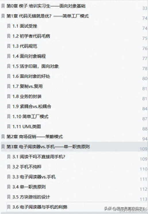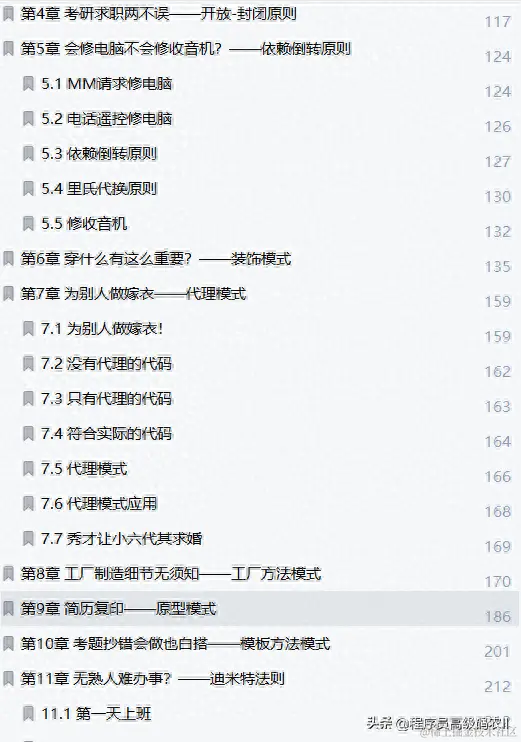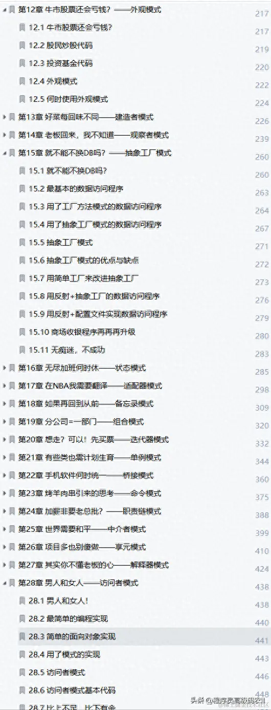 这份java溢彩加强版大话设计模式技术文档共有500页,包含的内容有点多,这里就不过多的给大家介绍了,需要的小伙伴点击此处即可