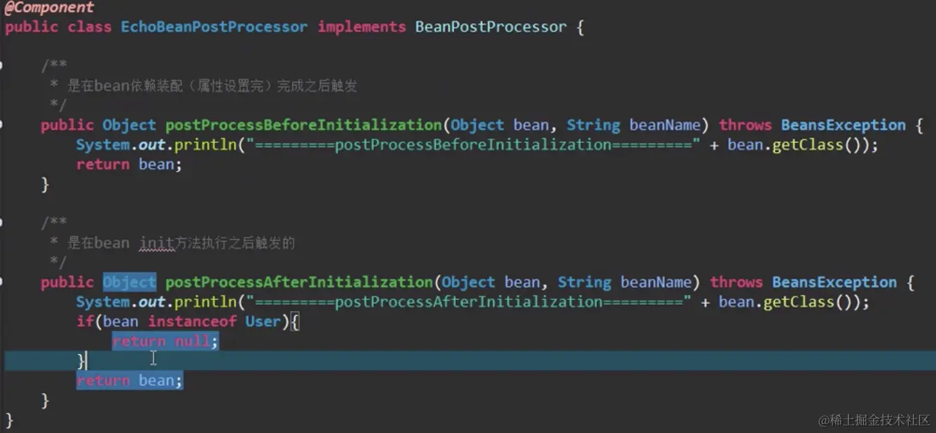 - 可以初始化调用方法(在初始化前后的后置处理方法中)