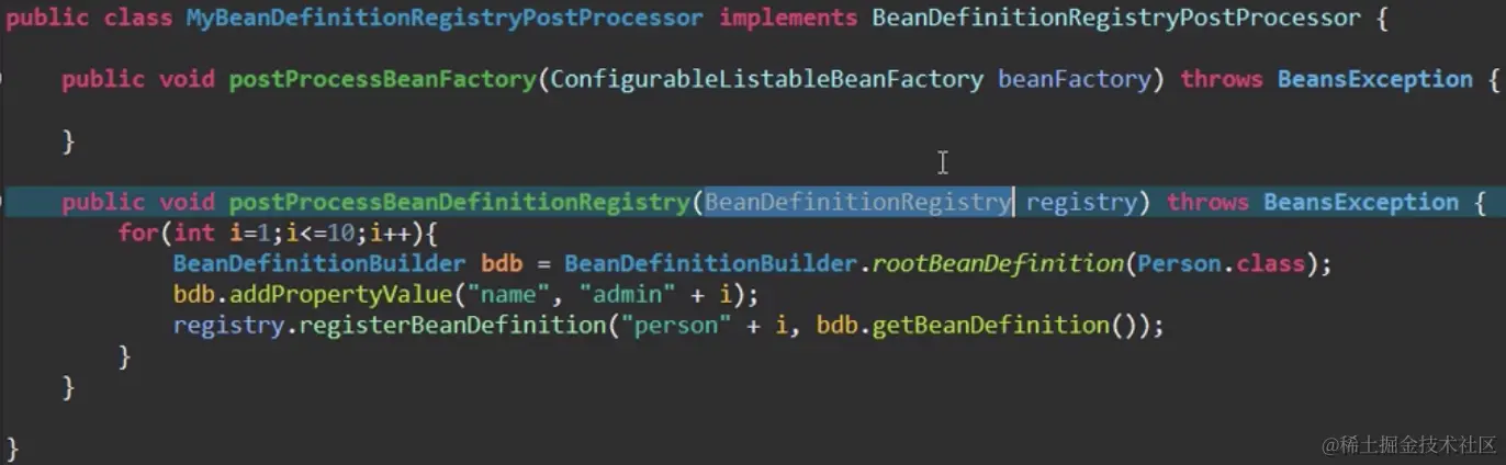 ImportBeanDefinitionRegistrar接口:接口方法入参有个一个BeanDefinitionRegistry,可以用来在容器中注入bean,可以通过实现此接口实现动态注入