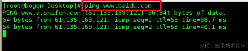用ping命令后,每一次都执行,说明网络连通了。