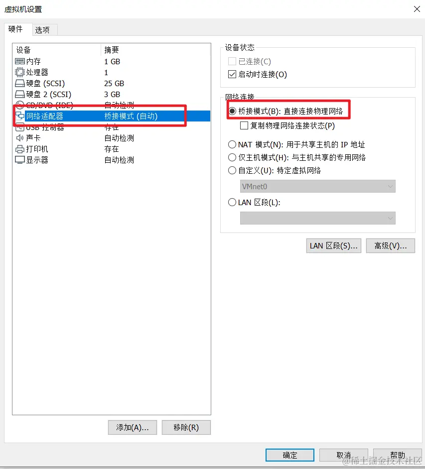 1.1 虚拟机连接桥接网络