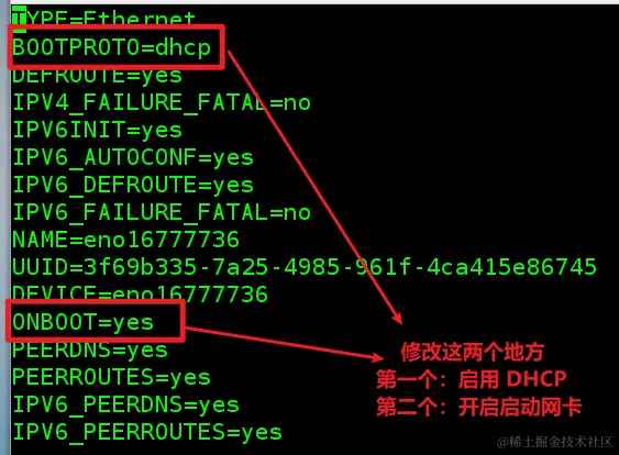 - BOOTPROTO=dhcp 让网卡迎合 DHCP,自动获取 IP 地址