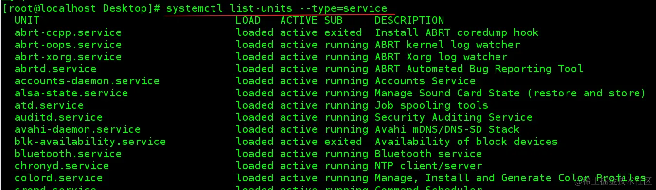 list-units:展示出单位,--type=service 指定类型是服务的