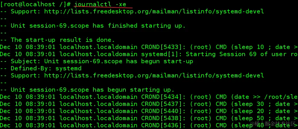 journalctl -xe -- 显示信息
