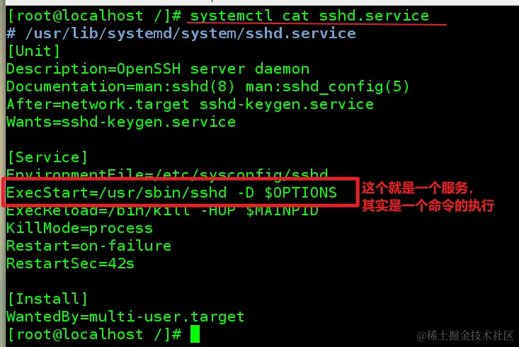 systemctl cat + 服务名称 -- 可以查看一个服务的详细信息