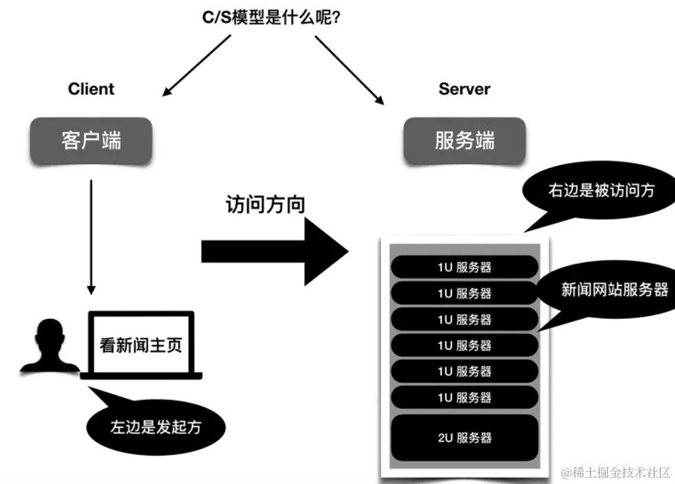 左边是客户端,作为请求的发起方;右边是服务器,作为被访问的一方。