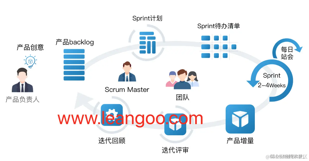 - 开发、测试、集成:团队在Sprint期间协作完成工作,包括开发、测试和集成。