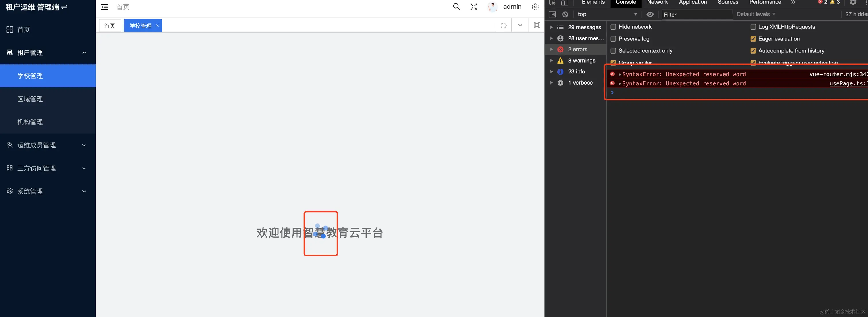 可能是顶层await问题,即在函数内使用 await 时,该函数本身必须携带 async,否则就不能使用 async/await