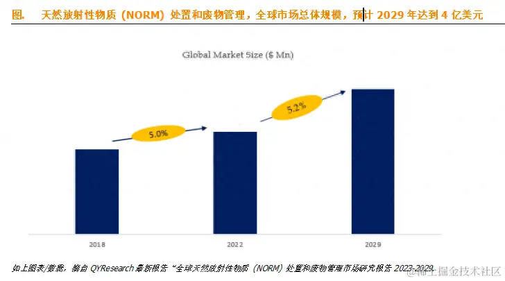 据QYResearch调研团队最新报告“全球天然放射性物质 (NORM) 处置和废物管理市场报告2023-2029”显示,预计2029年全球天然放射性物质 (NORM) 处置和废物管理市场规模将达到4亿美元,未来几年年复合增长率CAGR为5.2%。