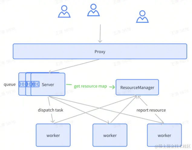 我们直接在server端做了一个manager。每次查询的时候manager会去check集群的资源,并且持有一个锁。如果资源不够用,则等待资源释放后去唤醒这个锁。这就避免了Server端不限制的下发计算任务,导致worker节点超载,然后崩掉的情况。