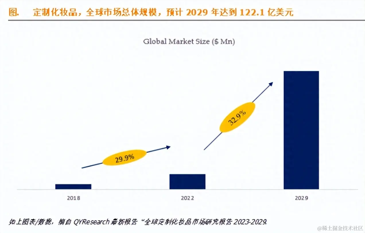 据QYResearch调研团队最新报告“全球定制化妆品市场报告2023-2029”显示,预计2029年全球定制化妆品市场规模将达到122.1亿美元,未来几年年复合增长率CAGR为32.9%。
