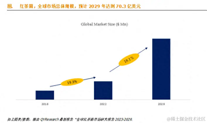 据QYResearch调研团队最新报告“全球红茶菌市场报告2023-2029”显示,预计2029年全球红茶菌市场规模将达到70.3亿美元,未来几年年复合增长率CAGR为18.1%。