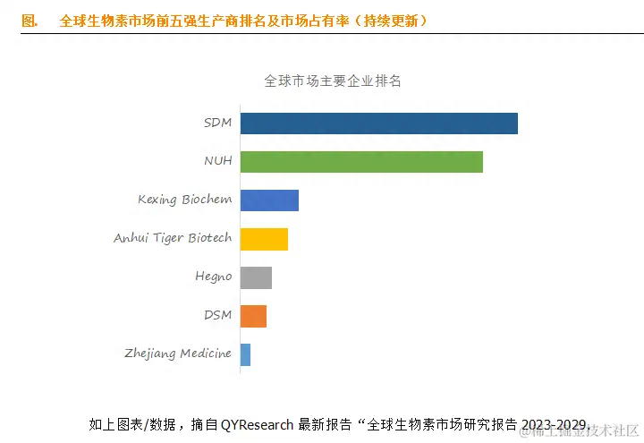 全球范围内生物素生产商主要包括SDM、NUH、Kexing Biochem等。2022年,全球前三大厂商占有大约76.0%的市场份额。