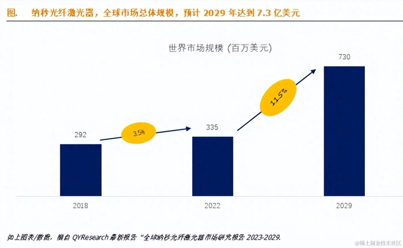 据QYResearch调研团队最新报告“全球纳秒光纤激光器市场报告2023-2029”显示,预计2029年全球纳秒光纤激光器市场规模将达到7.3亿美元,未来几年年复合增长率CAGR为11.5%。