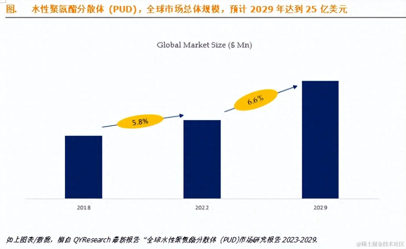 据QYResearch调研团队最新报告“全球水性聚氨酯分散体 (PUD)市场报告2023-2029”显示,预计2029年全球水性聚氨酯分散体 (PUD)市场规模将达到25亿美元,未来几年年复合增长率CAGR为6.6%。
